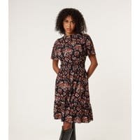 The Blue Vanilla Black Floral Print High Neck Mini Dress is ideal for daytime, casual, outings.