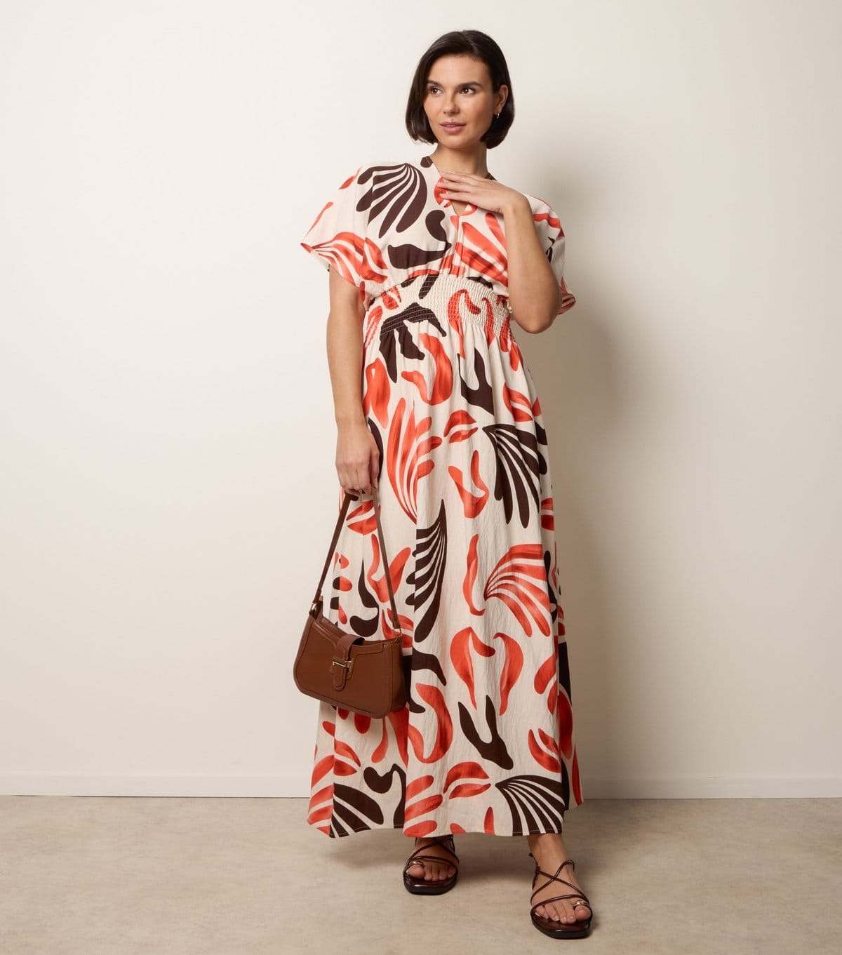 “Pair with brown leather sandals and a matching brown leather handbag for a cohesive summer look.”