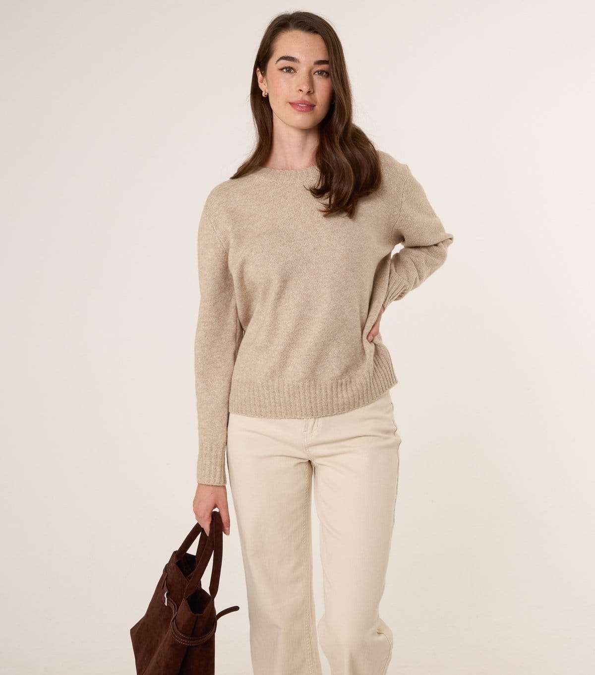 Timeless knit jumper in cream oatmeal with a unique tie-back detail. Perfect for a relaxed fit and versatile style. Ideal for casual or smart-casual occasions.