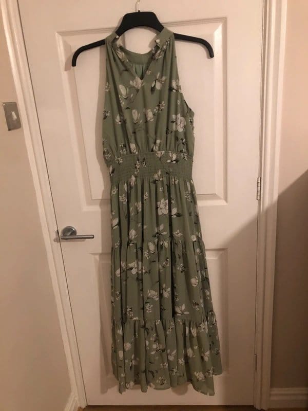 The Blue Vanilla Green Floral Halter Neck Maxi Dress is available in sizes M.