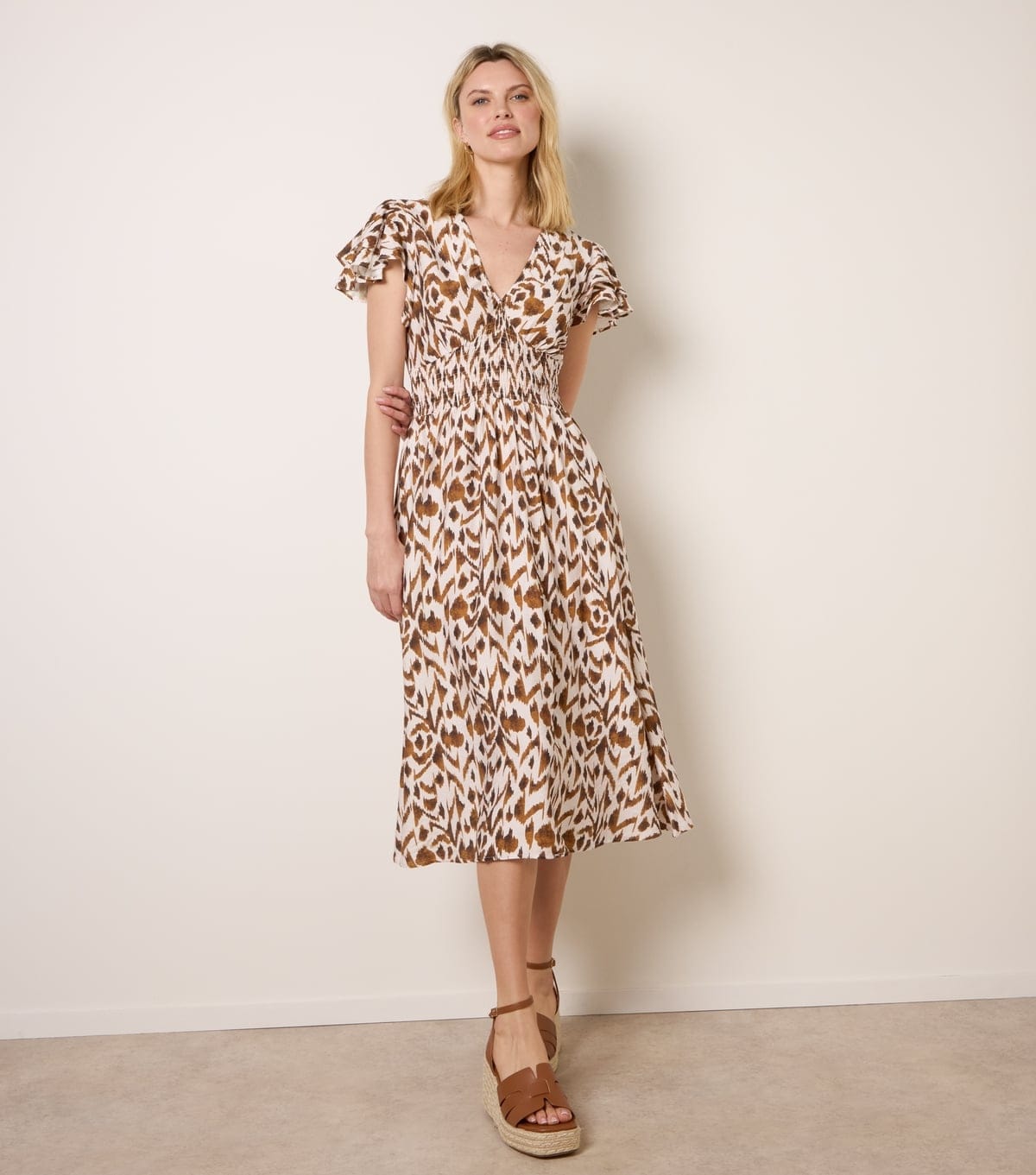 Back to Blue Vanilla Light Brown Abstract Print Midi Dress →