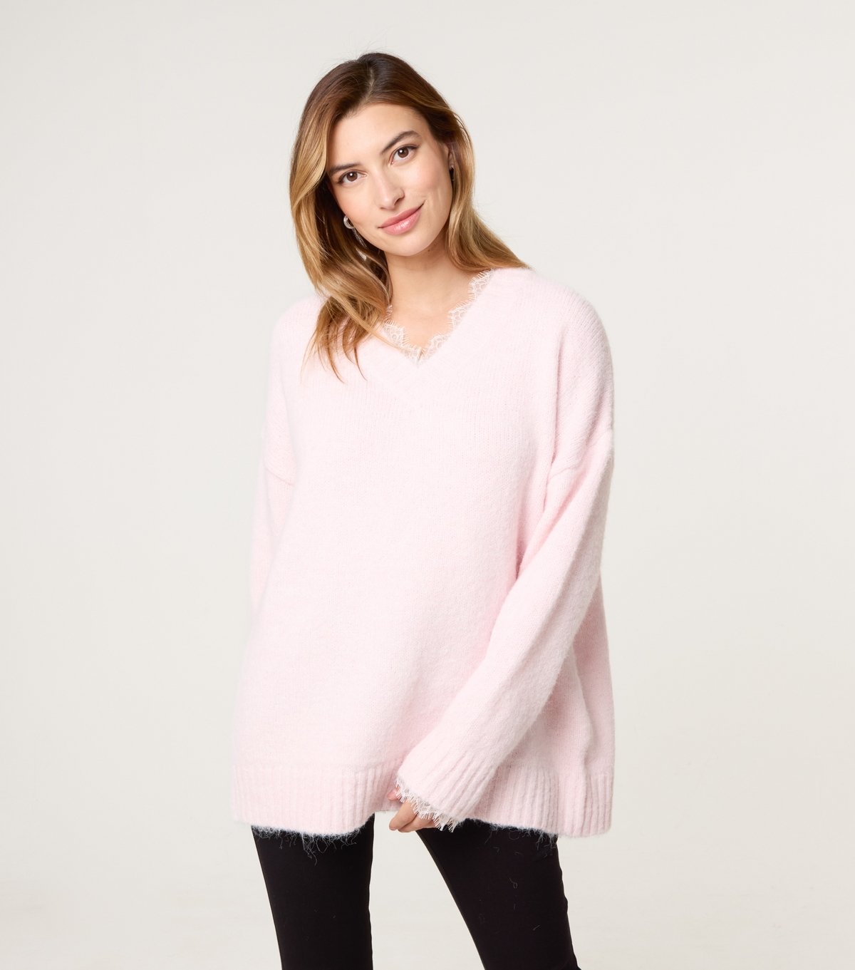 The Blue Vanilla Light Pink Knitted V-Neck Jumper is available in sizes ONE SIZE.