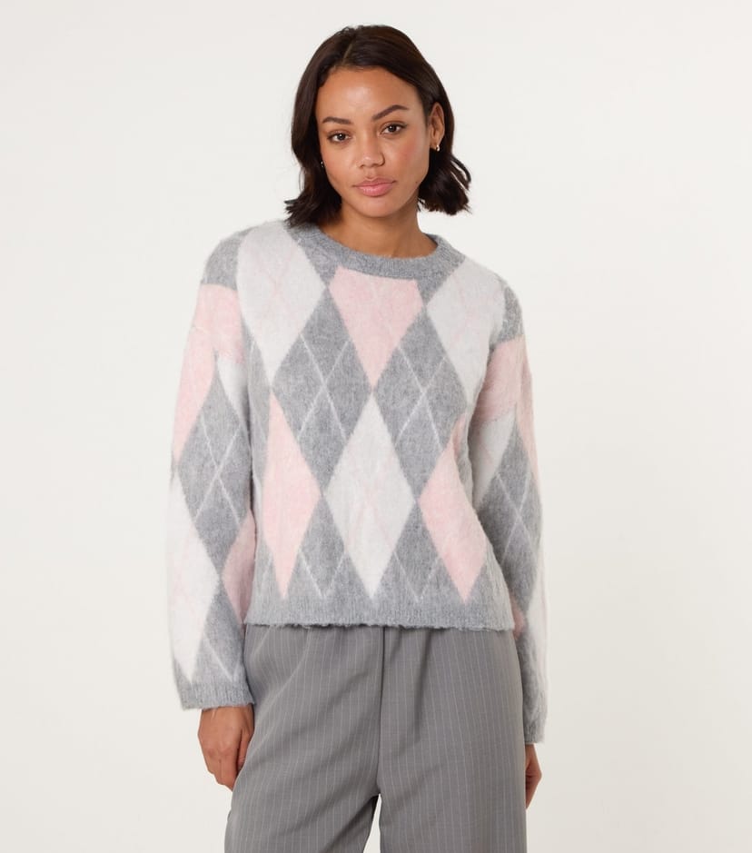 The Blue Vanilla Pink Argyle Knit Jumper is ideal for casual, work, weekend.