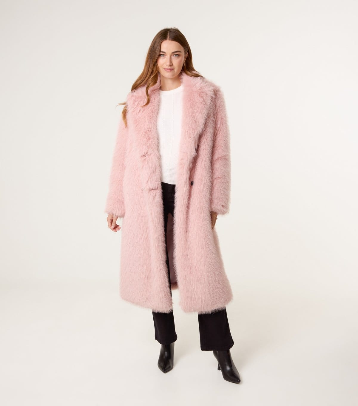 “Pair with black tailored trousers and black ankle boots for a chic winter ensemble.”