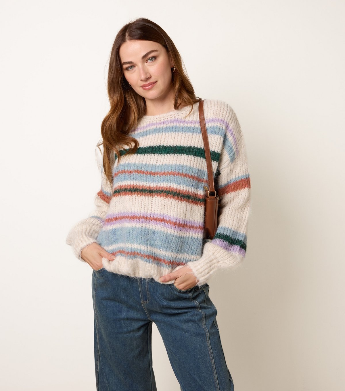 The Blue Vanilla Off White Striped Knitted Jumper is ideal for casual, everyday.