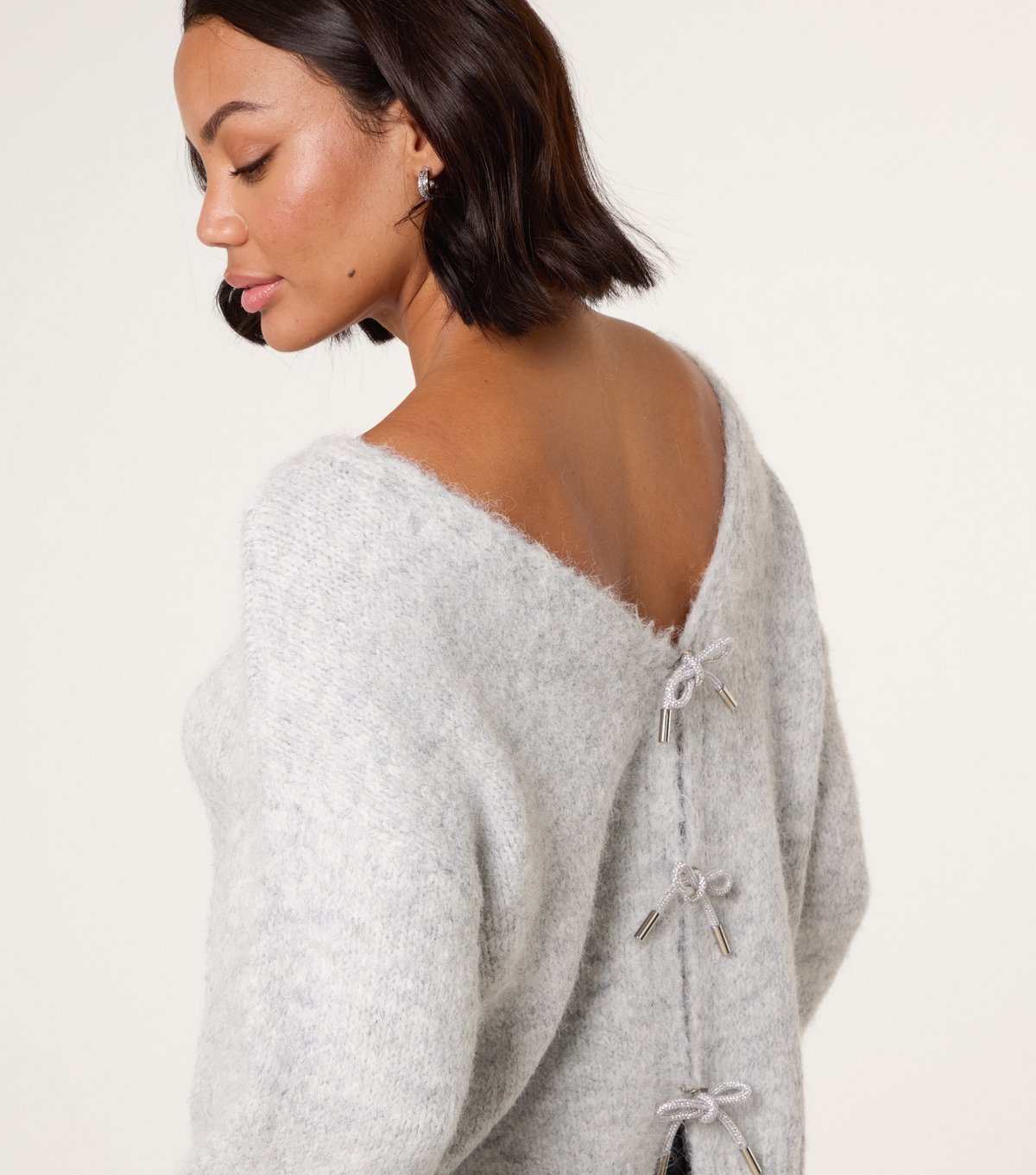 The Blue Vanilla Grey Bow Back Jumper is made from knit.