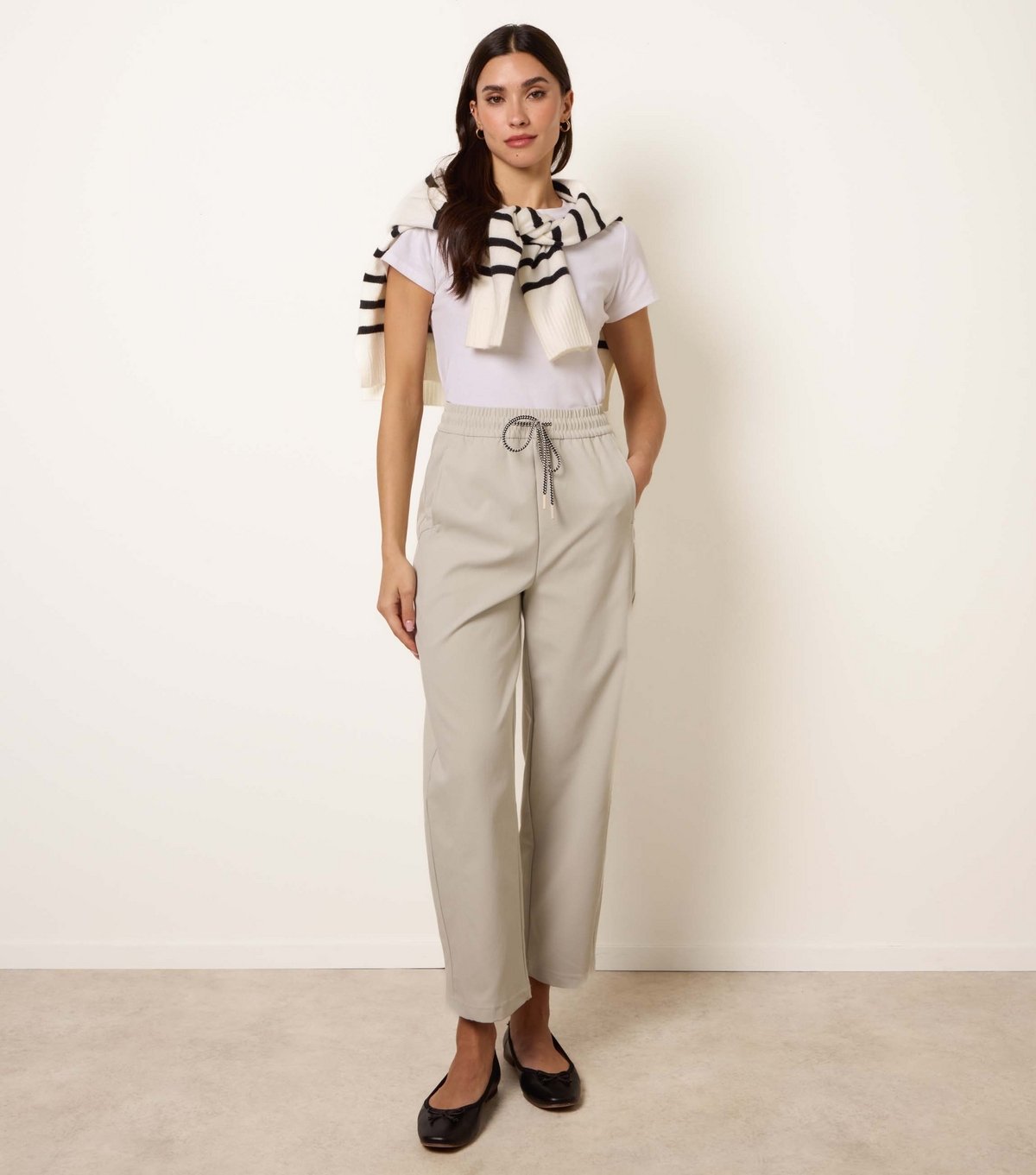 Stylish straight leg trousers by Blue Vanilla in a stone colour. Featuring an adjustable drawstring waist for a comfortable fit. Ideal for casual days or running errands. Pair with your favourite tops for a laid-back yet stylish look.