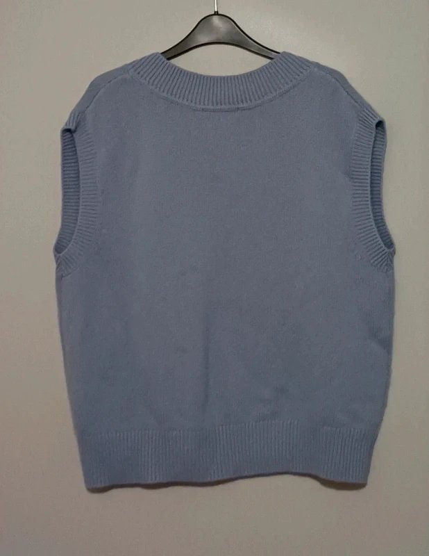 The Boden Light Blue V-Neck Cashmere Waistcoat is available in sizes L.
