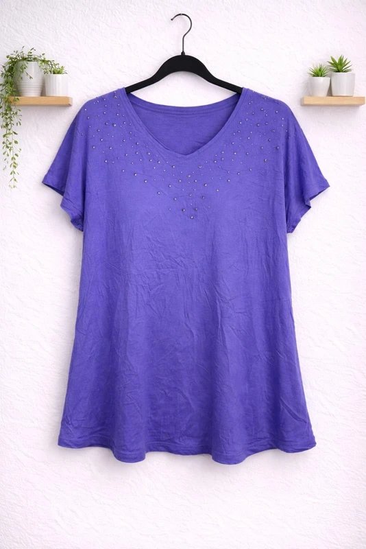 The Bonmarche Stud Embellished V Neck Tee in Purple is ideal for casual, work.