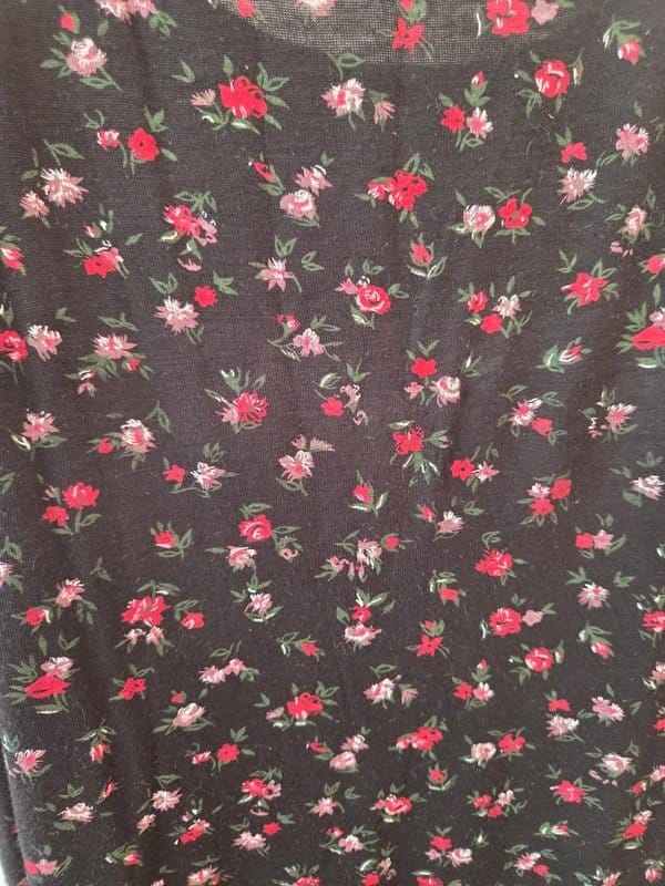 See all outfit ideasStylish black mini dress with a red and pink floral pattern from Boohoo. Features a double leg split for a playful look. Perfect for summer and versatile for layering.