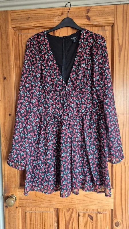 The Boohoo Black Floral Short Dress is available in sizes L.