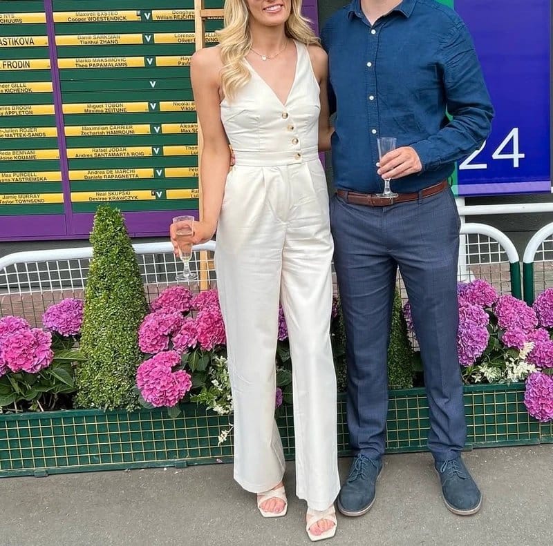 This cream satin wide leg jumpsuit by Boohoo features a waistcoat detail and buttoned front. Perfect for formal events, hen parties, and casual outings.