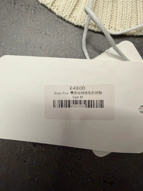 The Boyu Cream Ribbed Off Shoulder Knit Top with Belt - Size M is made from cotton, polyester.