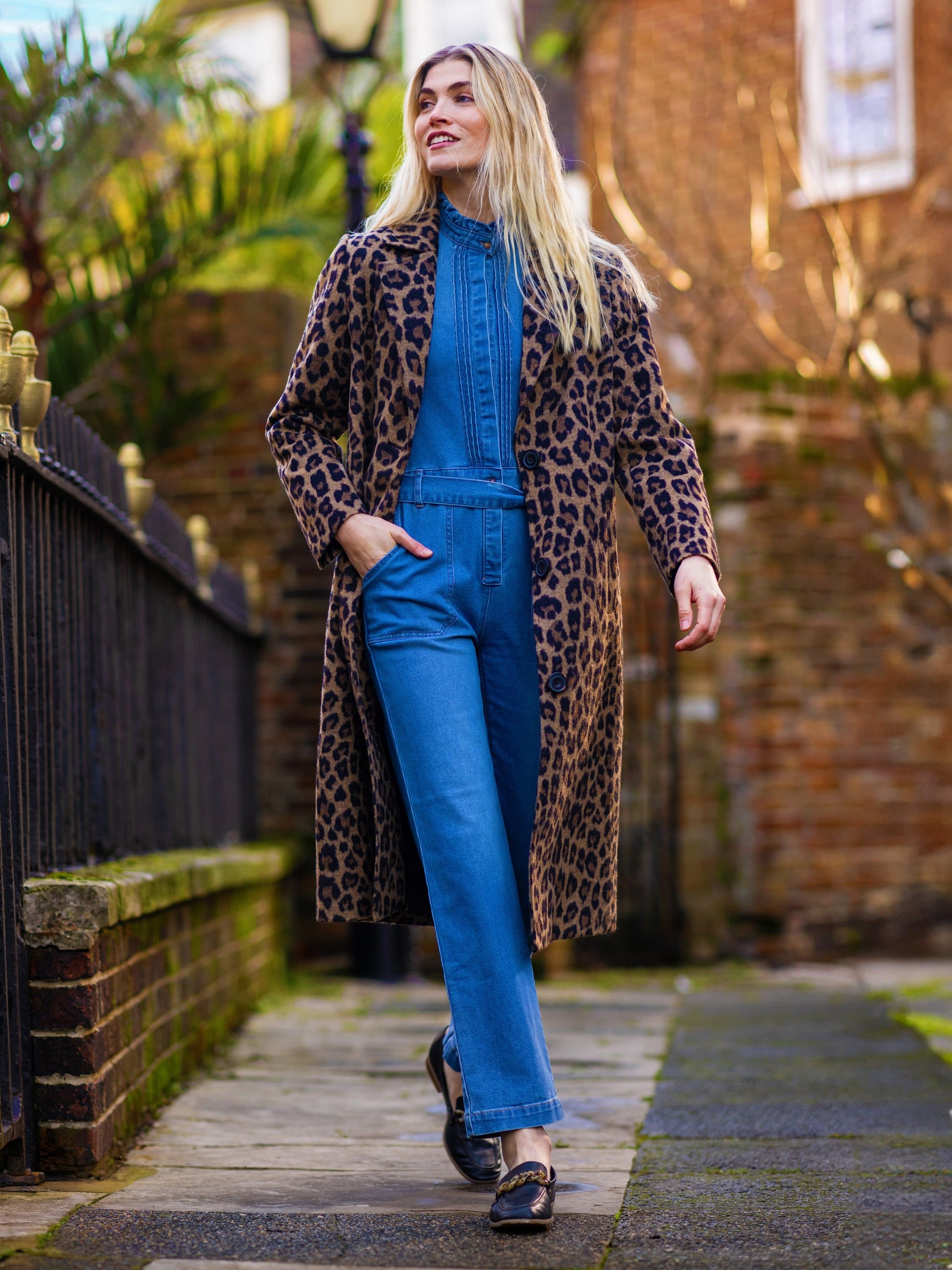 Pair with classic white trainers and a leopard print coat for a stylish casual look.