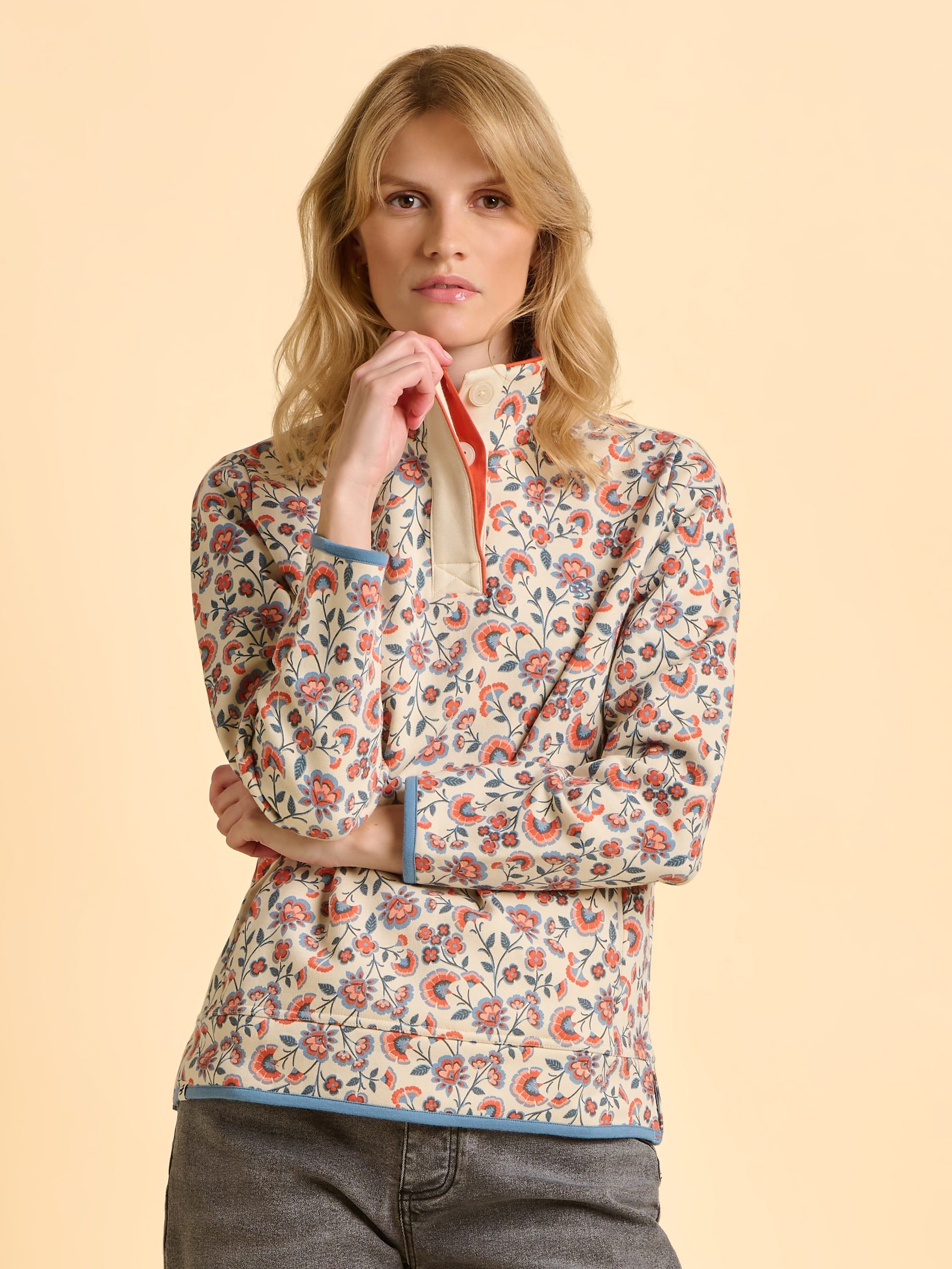 The Brakeburn Cream Floral Quarter Zip Sweatshirt is ideal for casual, everyday, transitional.