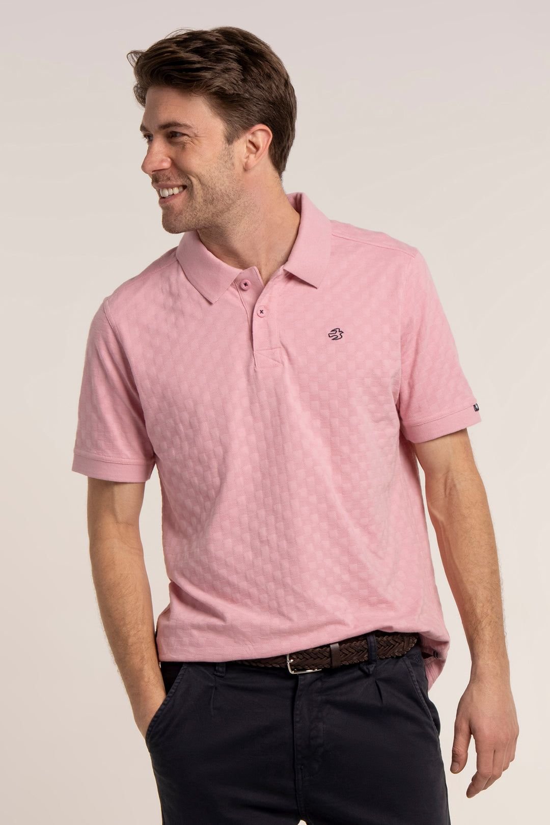 The Brakeburn Men's Pink SCAMPTON JACQUARD Polo is ideal for casual, smart-casual, outdoor.