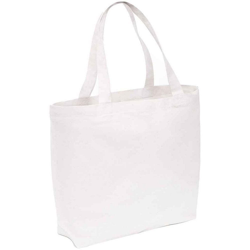 Stylish oversized tote bag in pure white cotton. Features a spacious main compartment and a sturdy carry handle. Ideal for everyday use or casual outings.