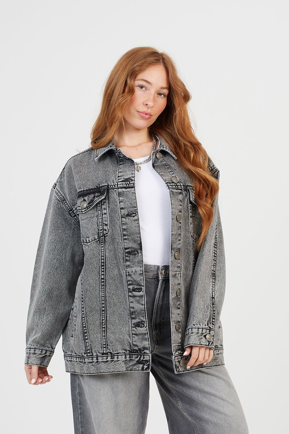 The Brave Soul Grey Oversized Denim Jacket is made from denim.
