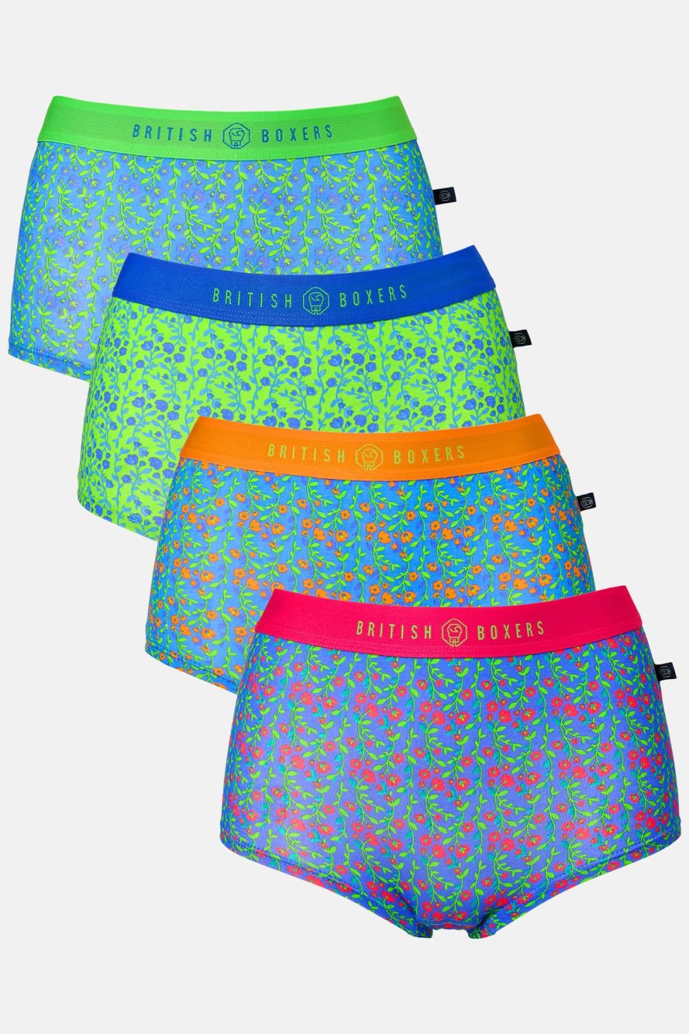 The British Boxers Women's Bright Blue Hipster Briefs Pack of Four is available in sizes 2XL, 3XL, 4XL, L, M, S, XL, XS.