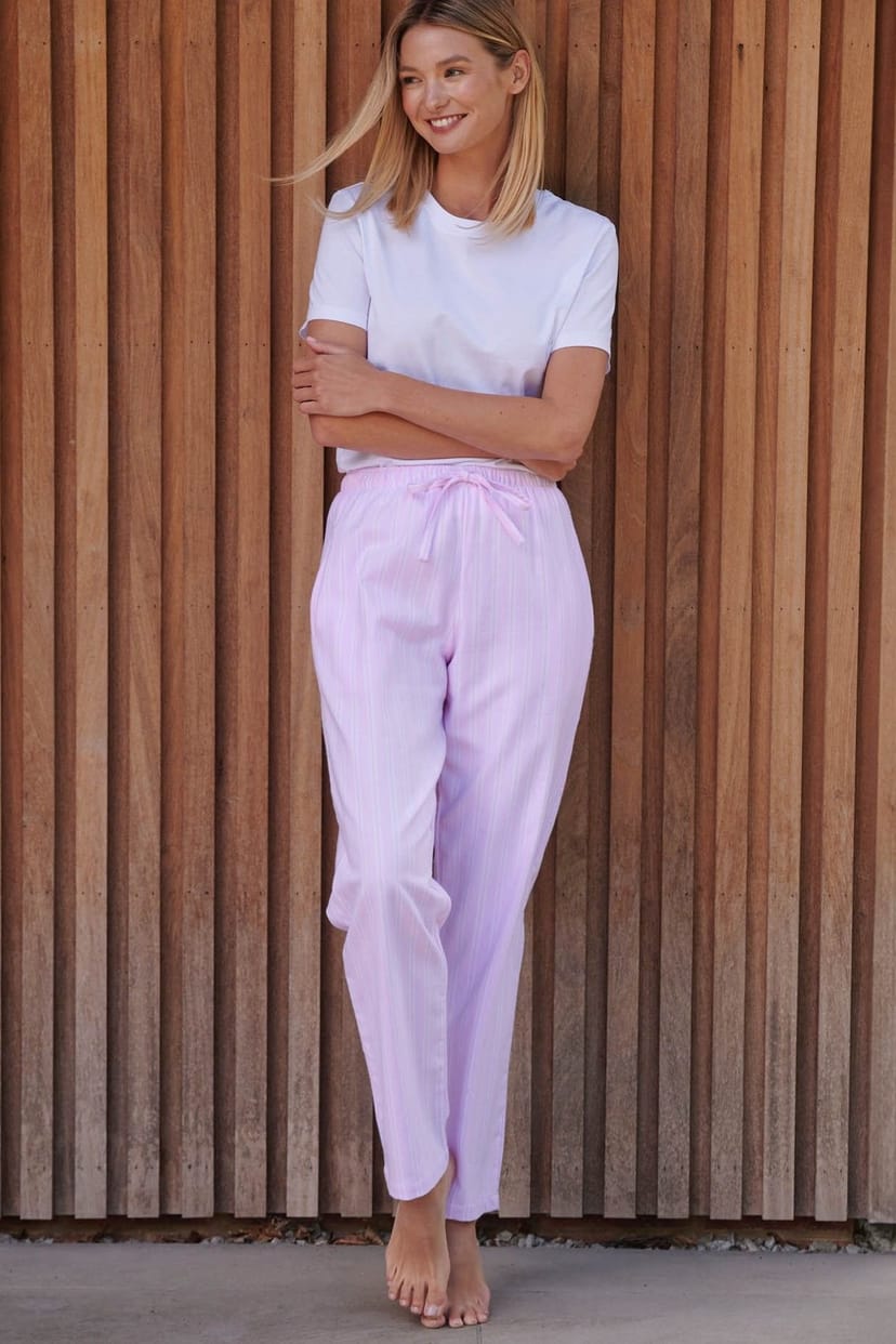 Slip into something more comfortable, night or day. These light pink brushed cotton pyjama trousers feature a soft, super-soft fabric with a subtle stripe design. Perfect for lounging or sleeping.