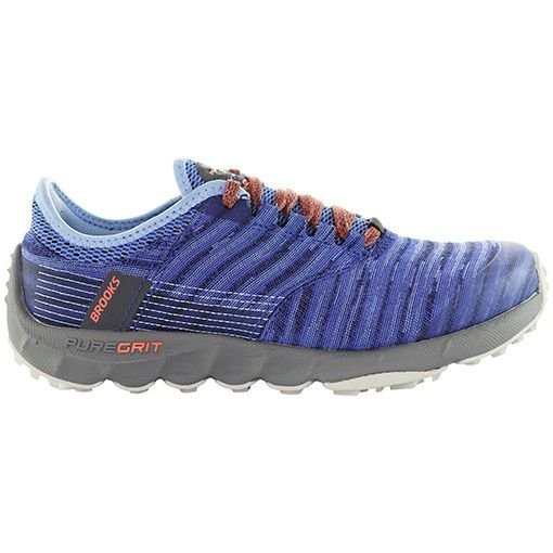 The Brooks Women's PureGrit 8 Lace-Up Blue Woven Running Shoes is made from woven fabric, rubber.