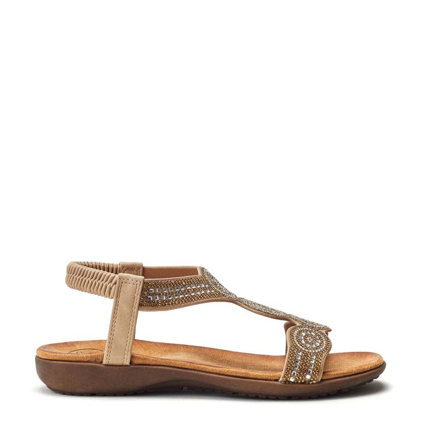 Casual summer sandals with a slightly lifted heel and an elasticated back strap for comfort. Perfect for warm weather.