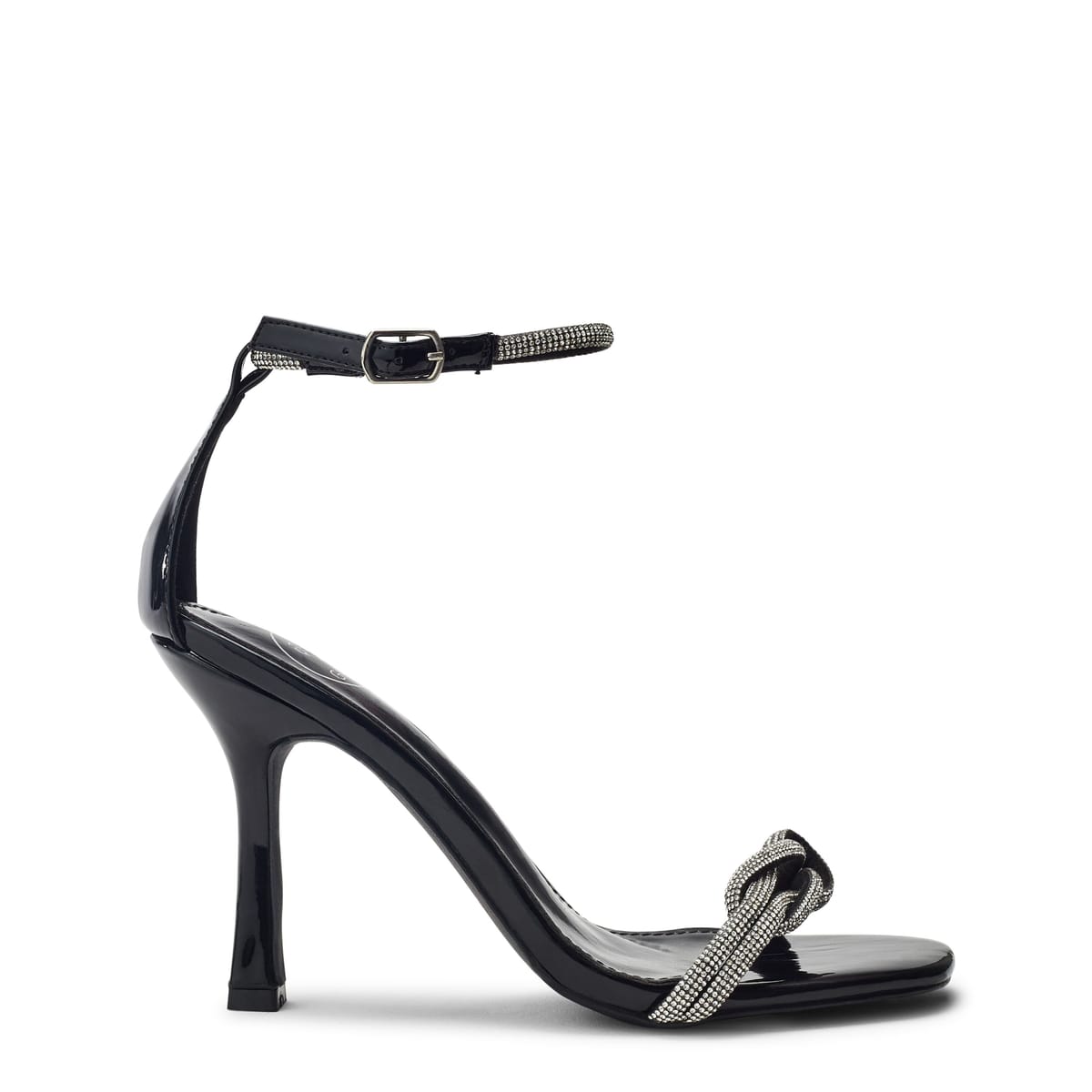 Elegant black sandals from b.soleful featuring a high heel and adjustable buckle fastening. The glitz details add a touch of sparkle, perfect for any occasion.