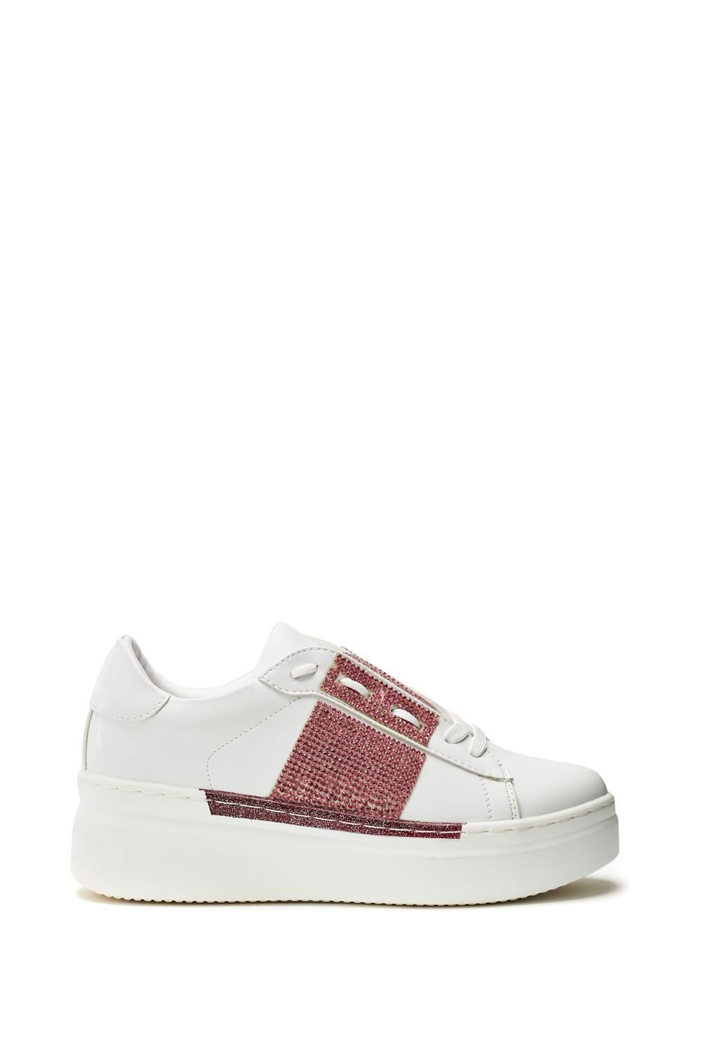 Elegant white trainers with a red glitter stripe for a touch of glamour. The wedge heel adds slight lift while maintaining comfort. Ideal for casual outings.