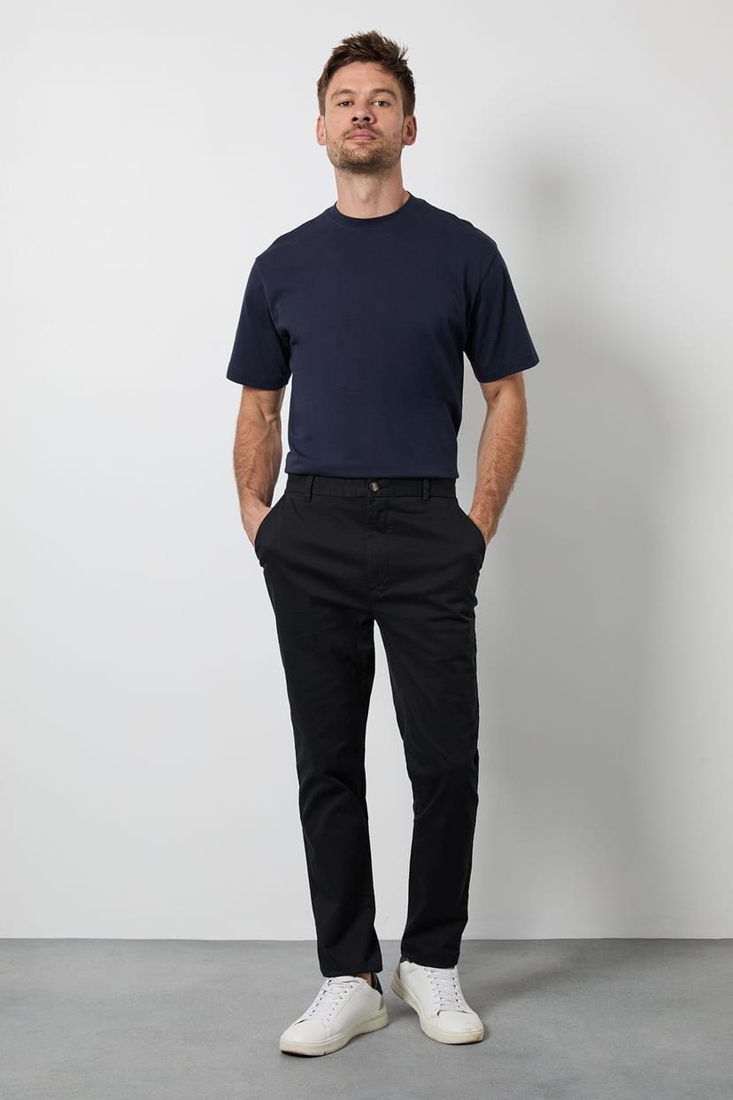 See all outfit ideasSleek skinny fit chino trousers designed for a contemporary silhouette. Crafted from smooth woven fabric, these trousers maintain their shape throughout the day. The tapered leg design skims the ankle for a refined finish. Ideal for smart-casual wear, these chinos feature classic styling with subtle detailing.