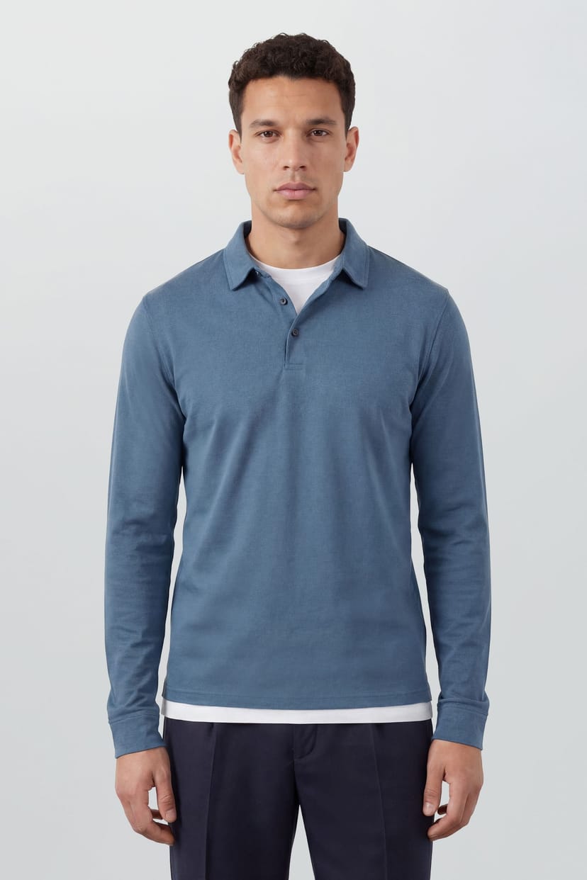 Classic long sleeve polo shirt with a traditional collared neckline for a smart-casual aesthetic. Knitted fabric construction offers comfort and durability for everyday wear. Ribbed cuffs provide a secure fit and add subtle detailing to the sleeves. Traditional button placket allows for customisable style.