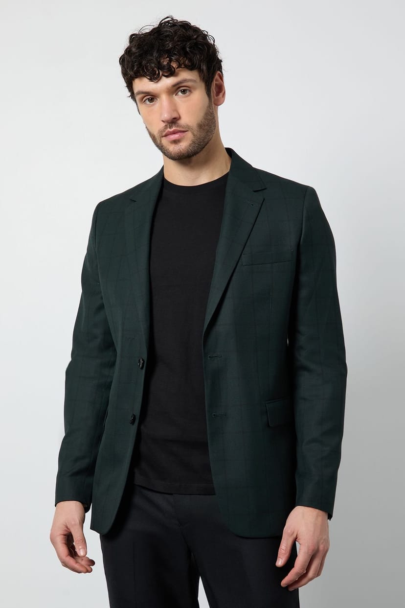 The Burton Men's Dark Green Check Tailored Fit Blazer is ideal for formal, business, evening.