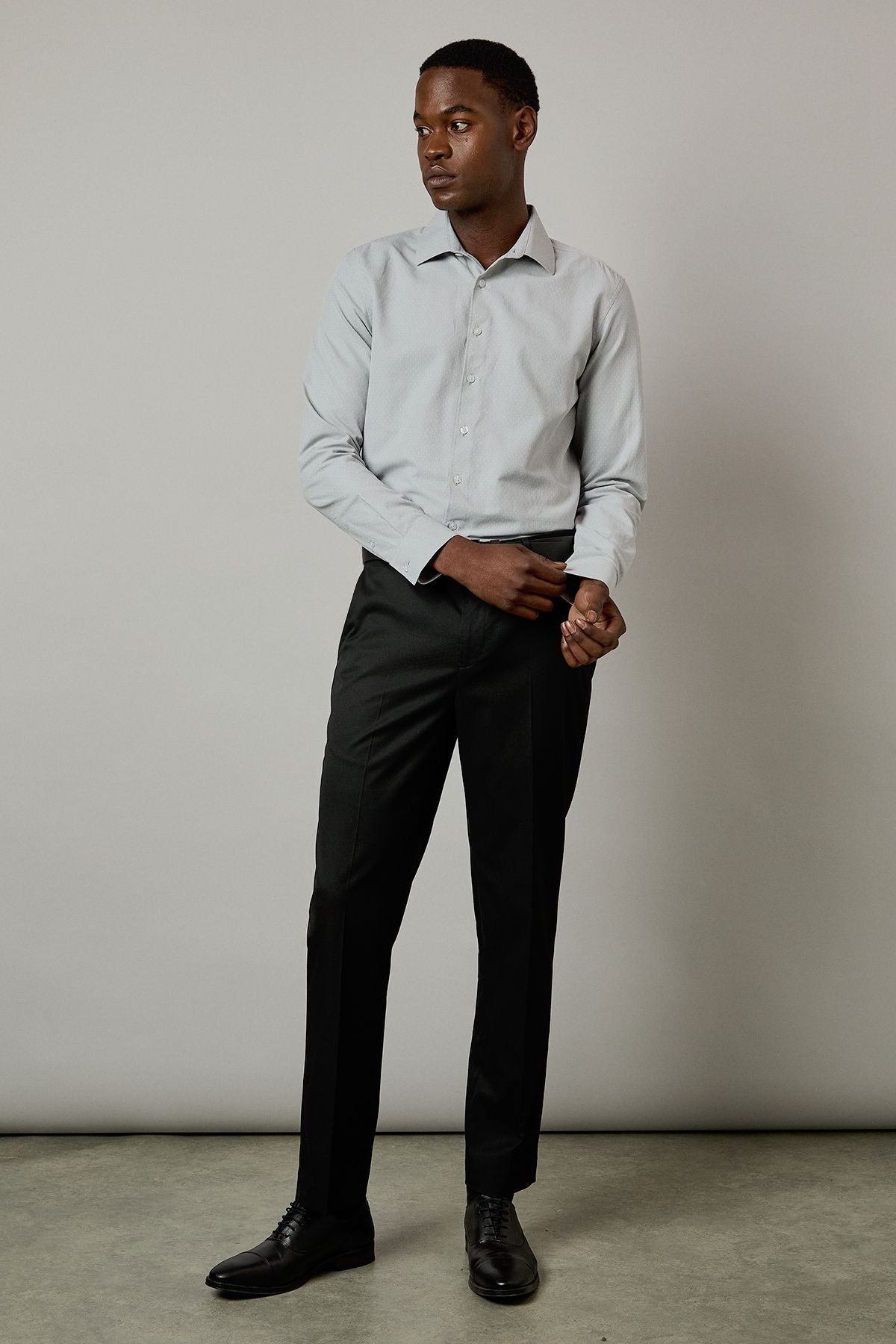 The Burton Men's Dark Grey Dobby Slim Fit Long Sleeve Shirt is ideal for business, casual, everyday.