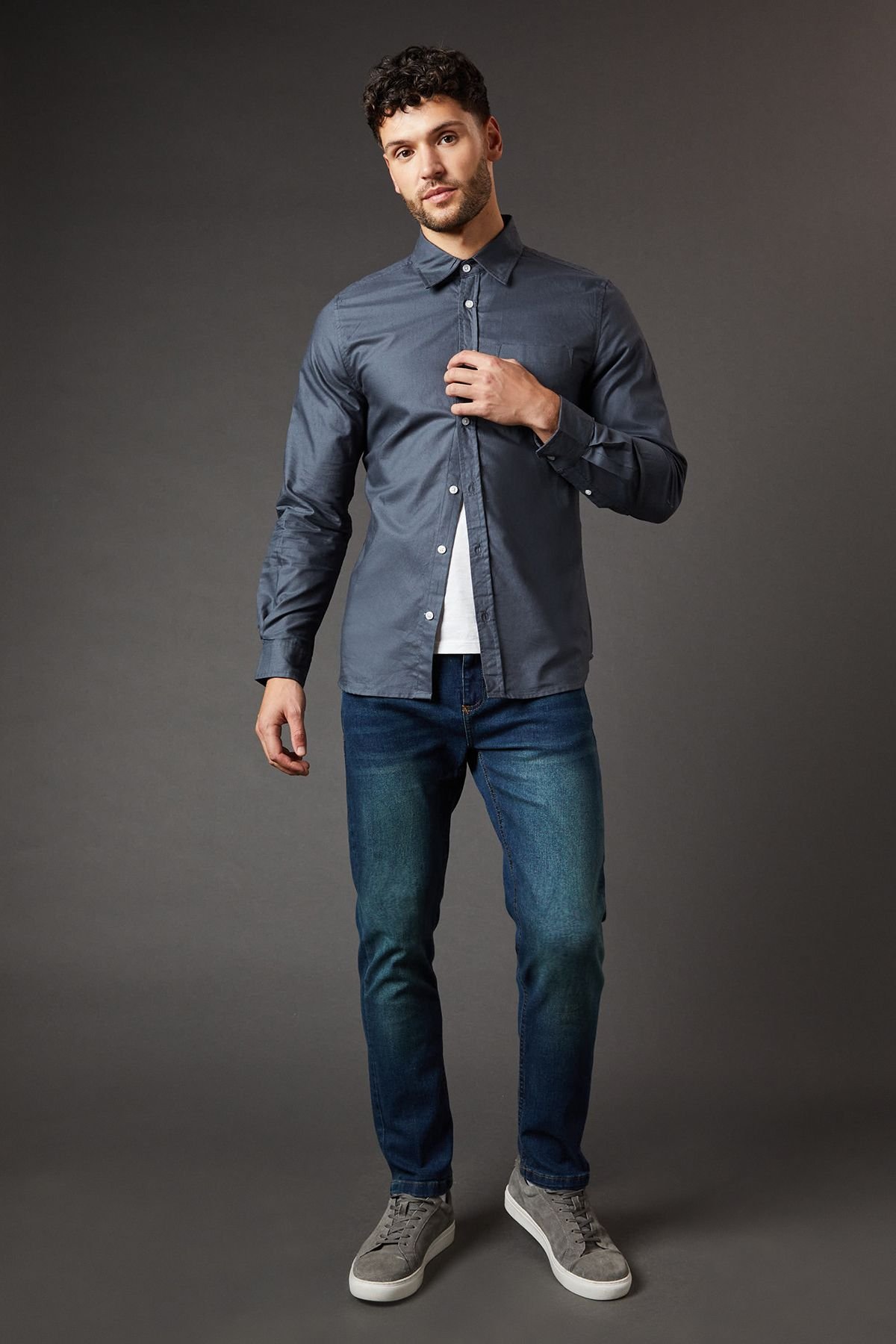 Pair with a white crew neck t-shirt and grey suede loafers for a smart-casual look.