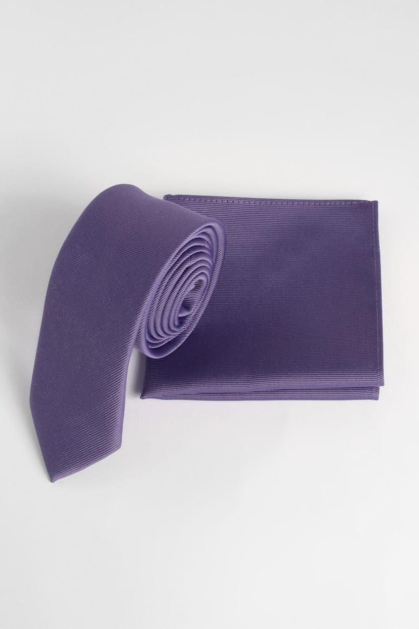 Sleek, slim-cut tie with a contemporary width for a modern silhouette. Matching pocket square for a coordinated, thoughtfully assembled look. Subtle diagonal ribbed texture adding depth and visual interest. Versatile accessory set that complements a variety of suit styles. Machine washable at 30 degrees.