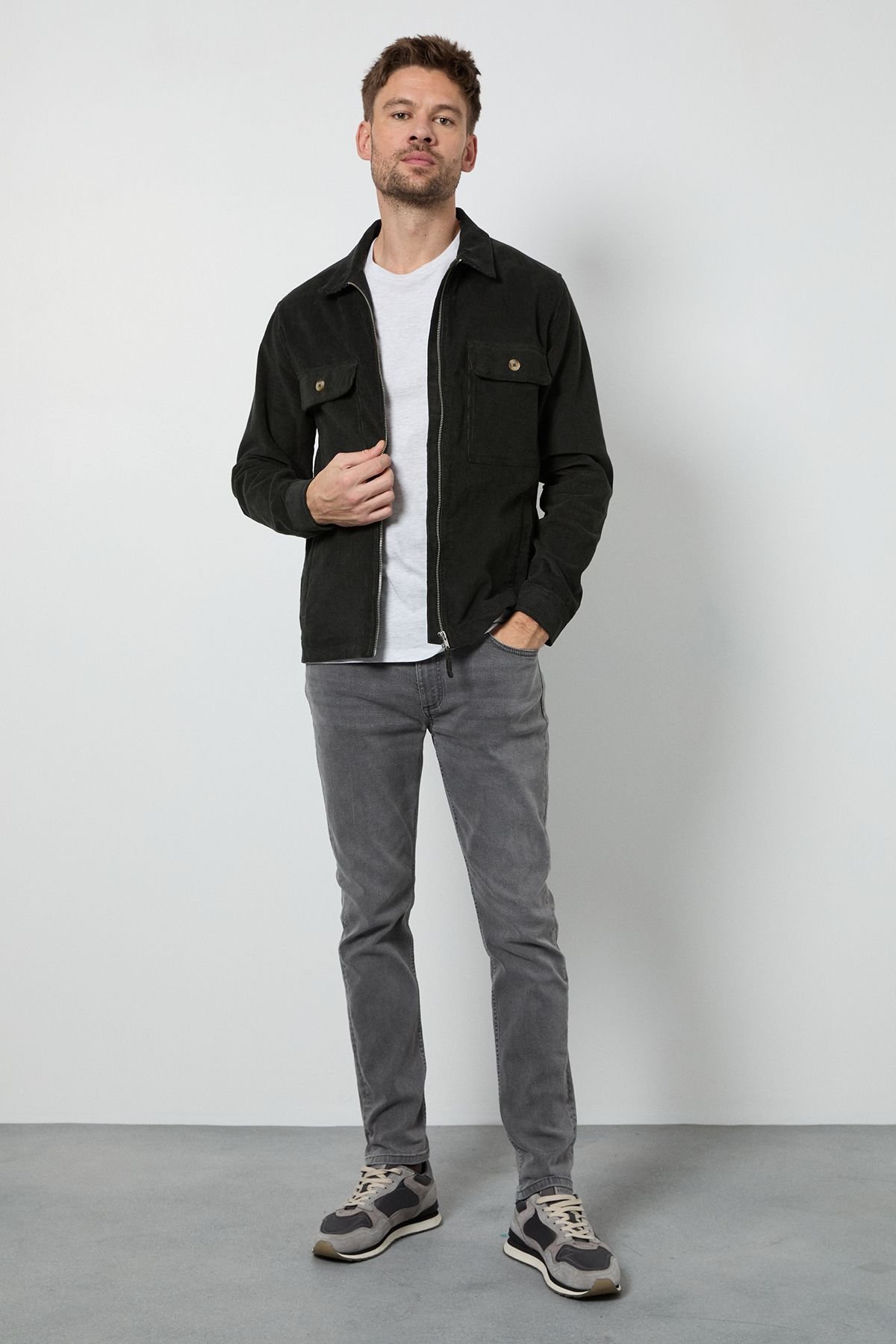 Pair with a white crew neck t-shirt and grey leather loafers for a smart-casual ensemble.