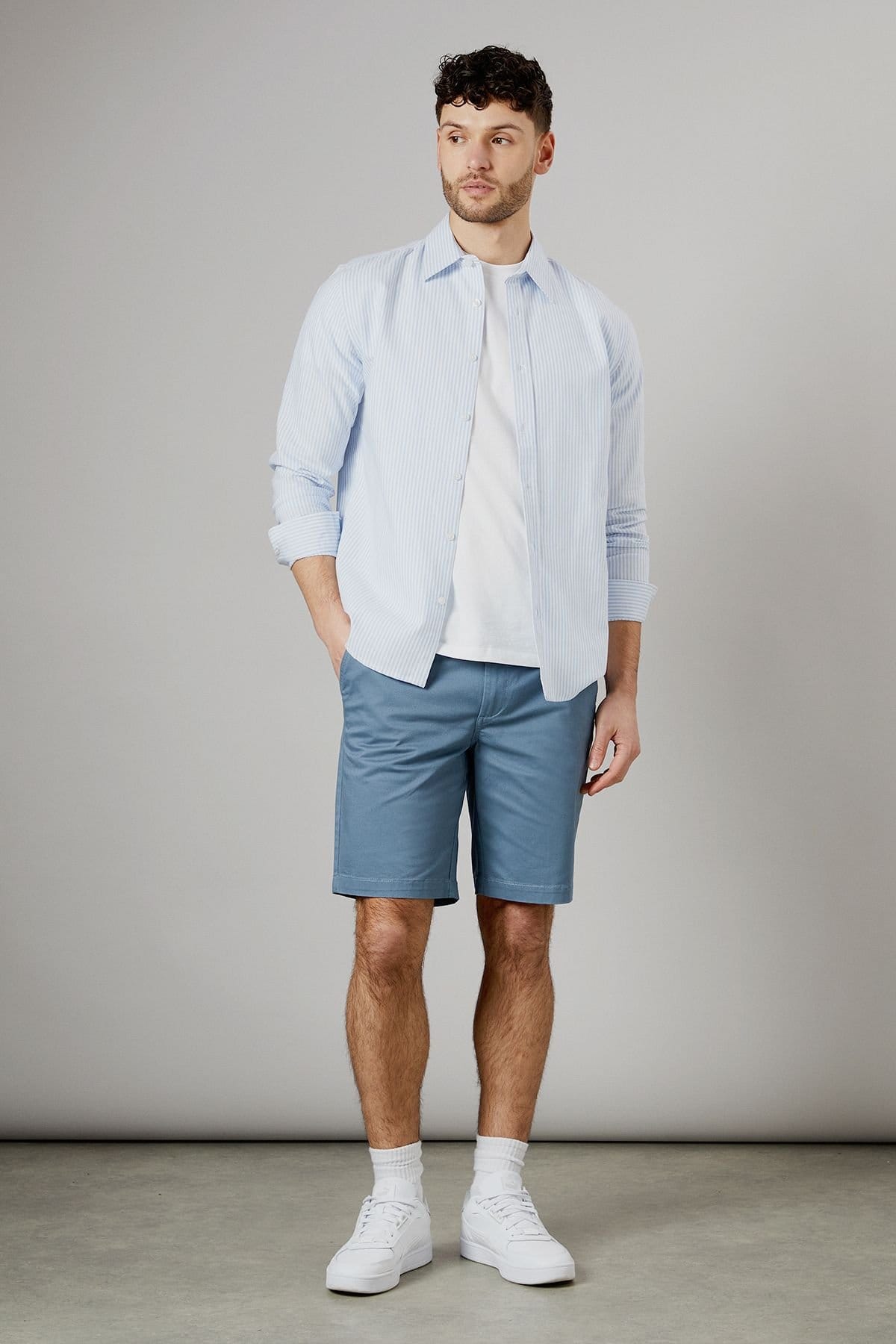 “Pair with a light blue shirt and white sneakers for a smart-casual summer look.”