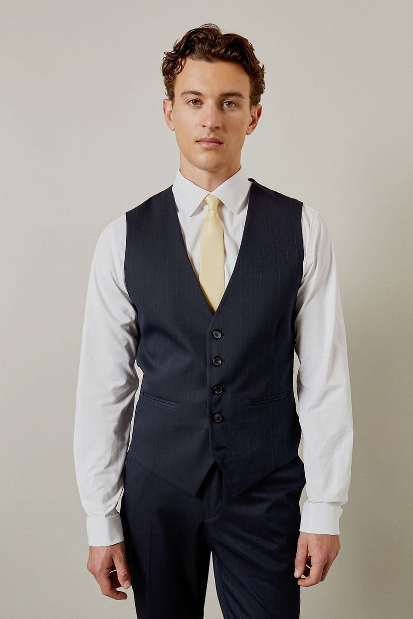 The Burton Men's Navy Pinstripe Waistcoat is ideal for formal, business, evening.
