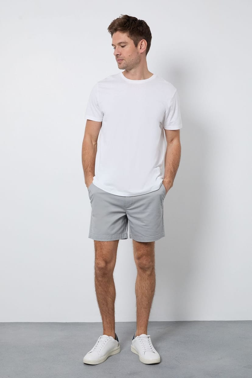 The Burton Men's Pale Grey Short Chino Shorts is available in sizes 28, 30, 32, 34, 36, 38.