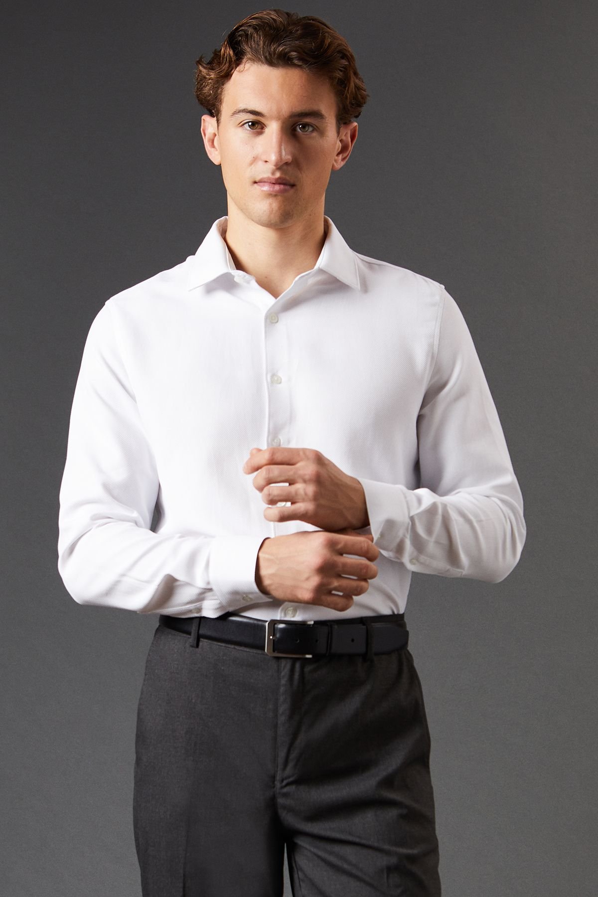 The Burton White Basket Weave Long Sleeve Smart Shirt is ideal for business, formal, wedding-guest.