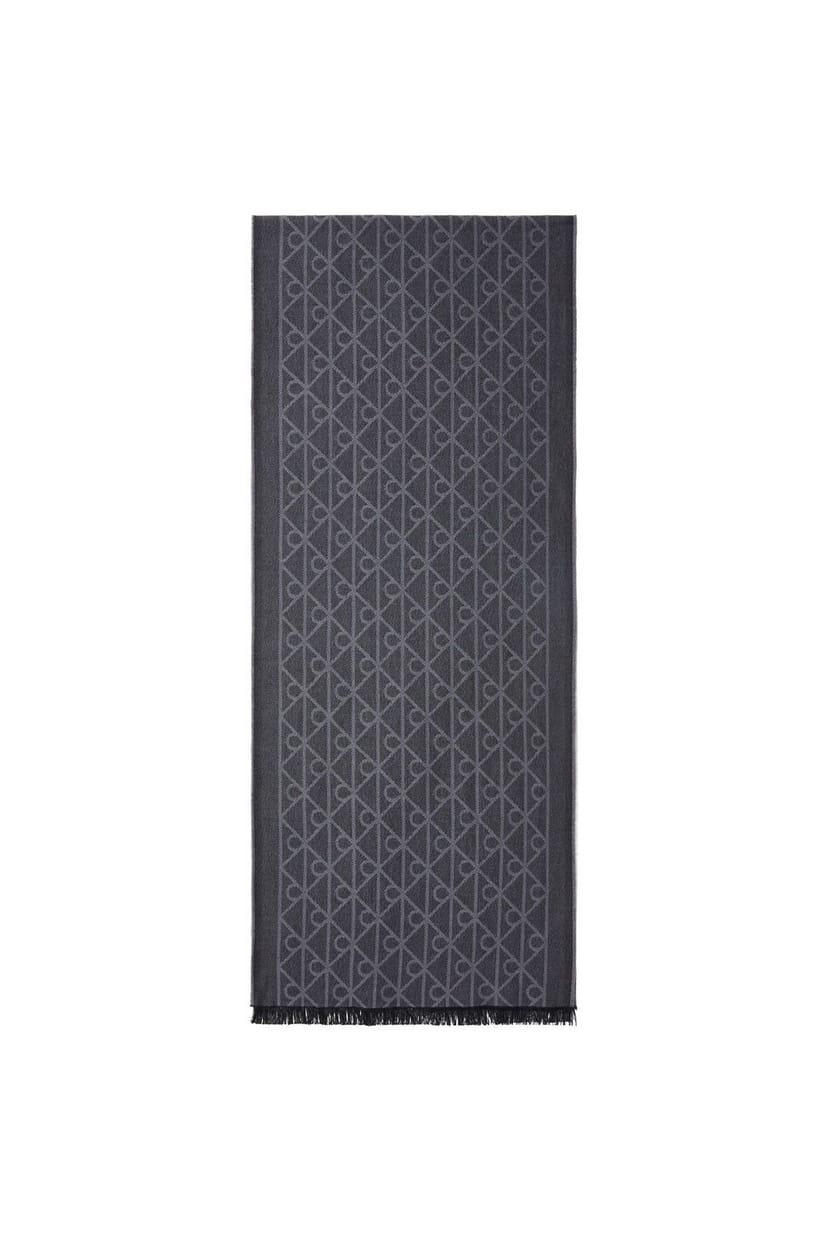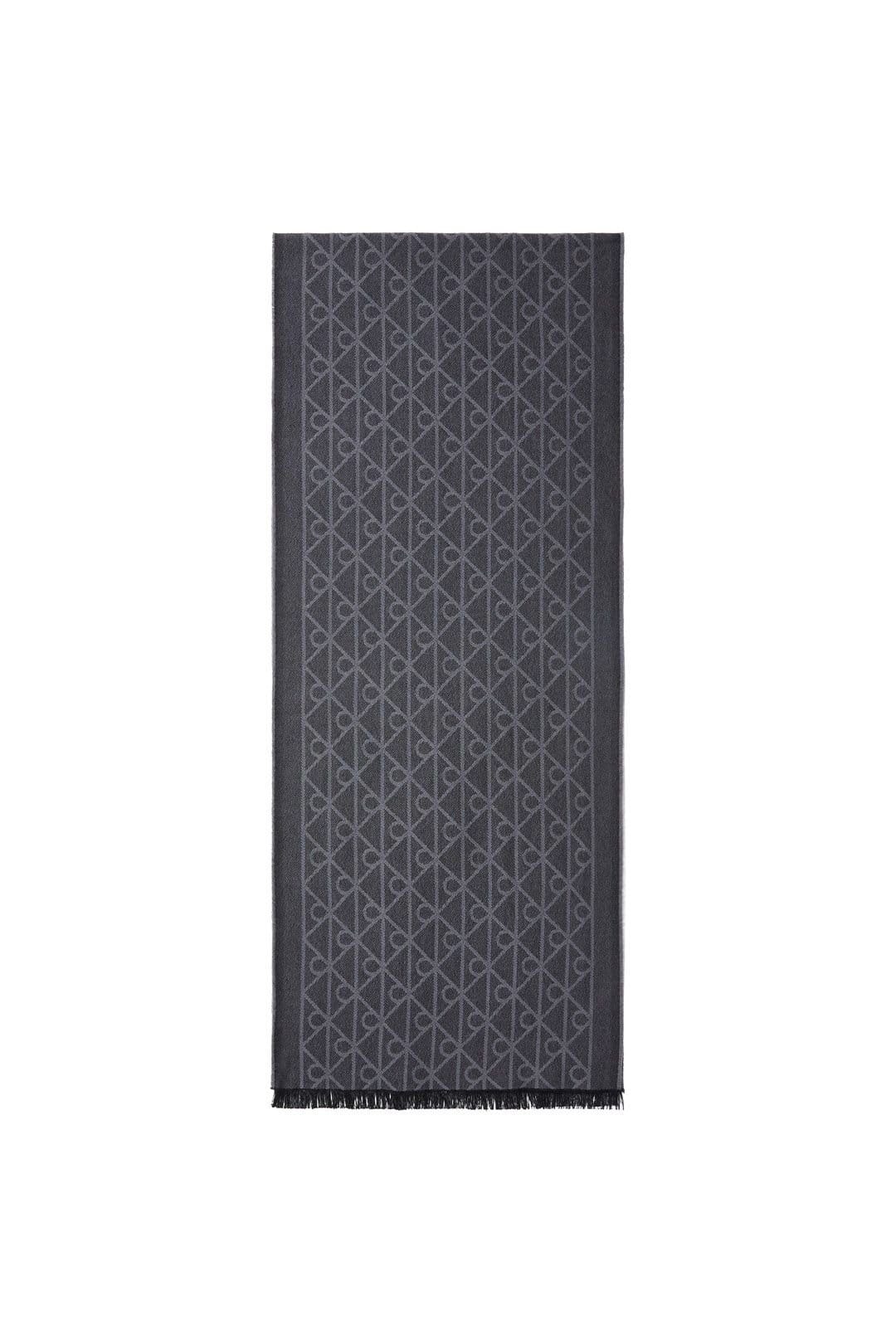 The Calvin Klein Women's Black Tonal Wool Scarf is available in sizes ONE SIZE.