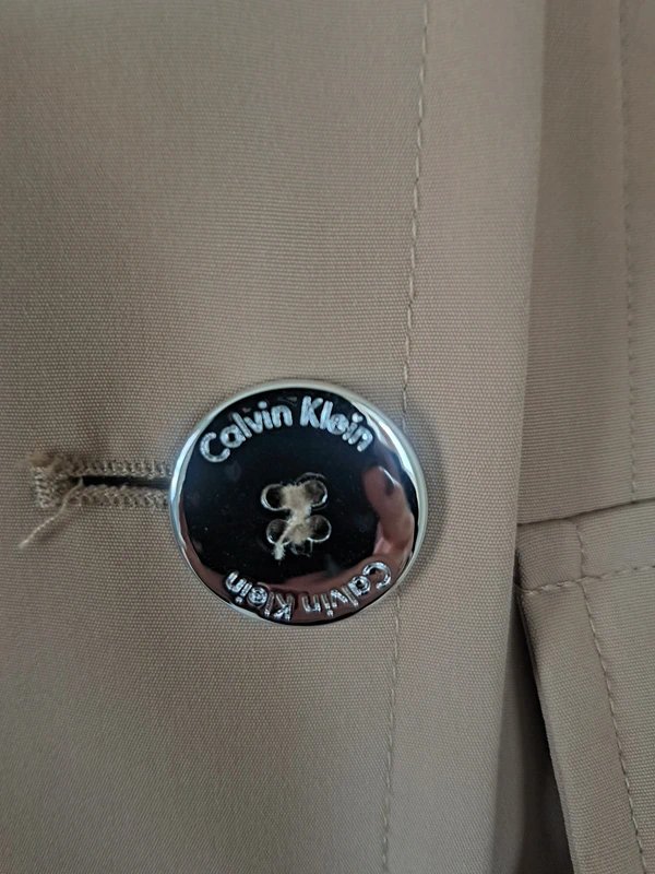 The Calvin Klein Beige Trench Coat is available in sizes S.