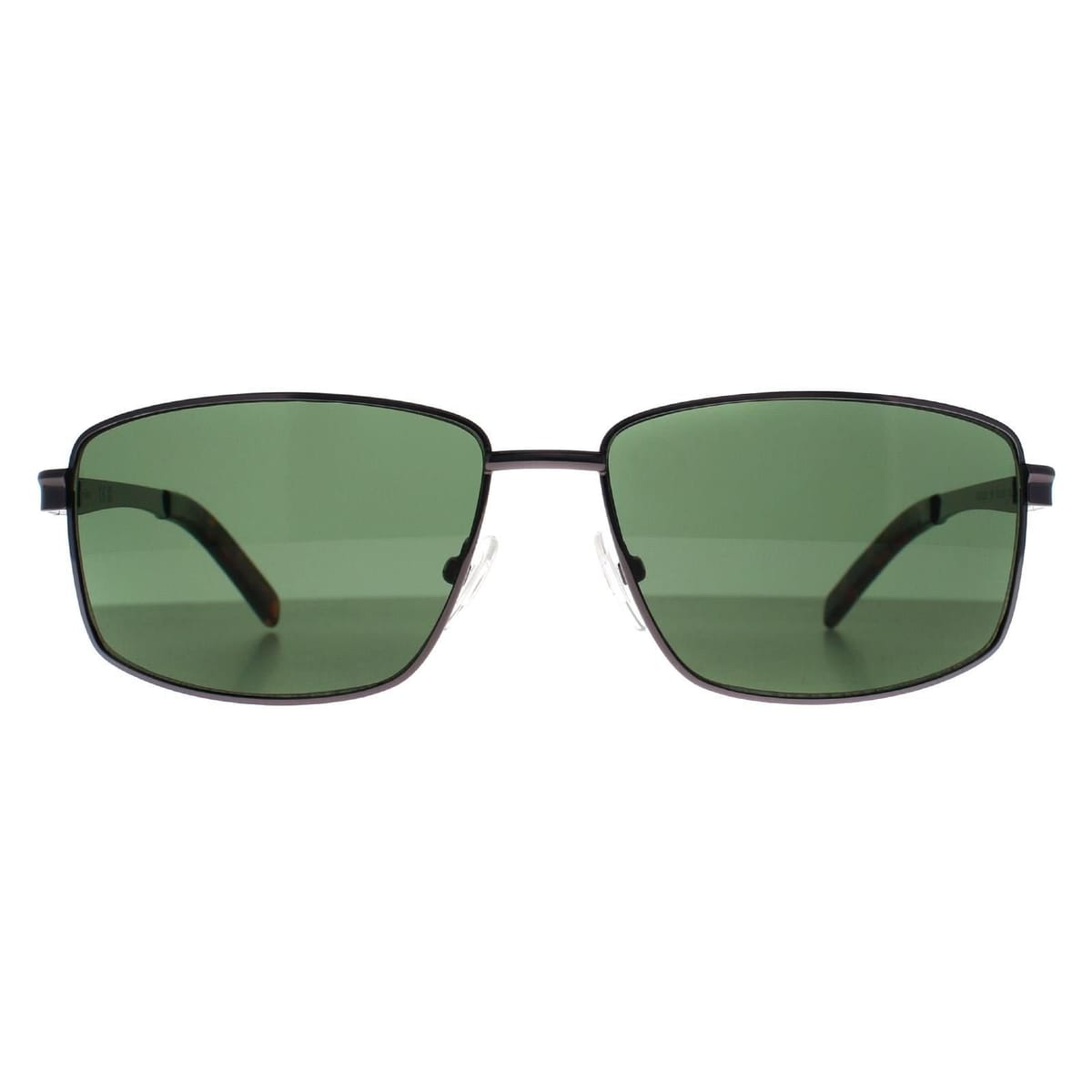 Minimalist rectangle sunglasses in ruthenium green with grey lenses. Crafted from lightweight acetate, these glasses offer a comfortable, durable fit with slim metal detailing for a clean, contemporary finish. The subtle Calvin Klein branding on the temples adds an understated touch.