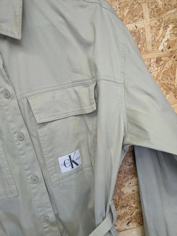 The Calvin Klein Jeans Belted Shirt Dress with Button Front is available in sizes S.