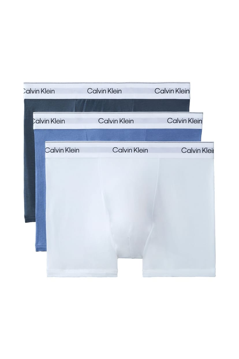 The Calvin Klein Men's Relaxed Fit Trunk 3Pk Multi White/Blue/Grey is made from cotton, polyester.