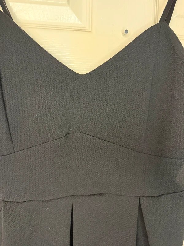 Beautiful skater-style dress with black and white detailing. The flowing skirt and flattering fitted waist make it perfect for events or evenings.