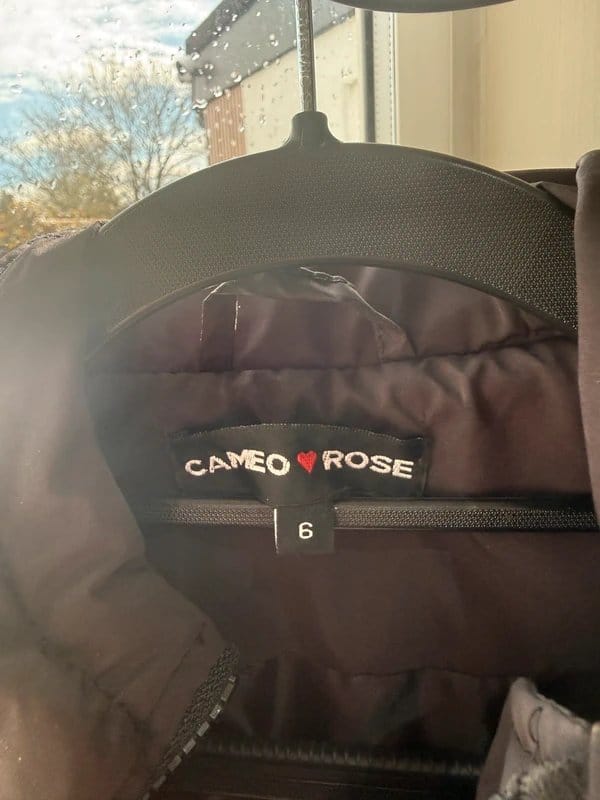 The Cameo Rose Black Puffer Gilet Hooded Bodywarmer is available in sizes S.