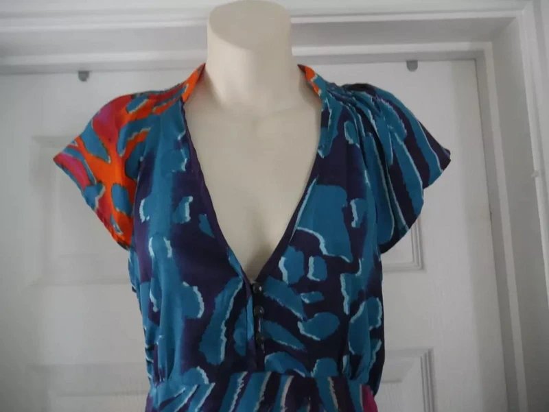 The Carbon Multicoloured Swirl Animal Summer Tea Dress is available in sizes M.