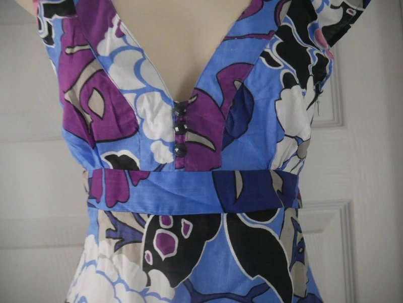 The Carbon Blue Purple Floral Print Summer Dress is available in sizes S.