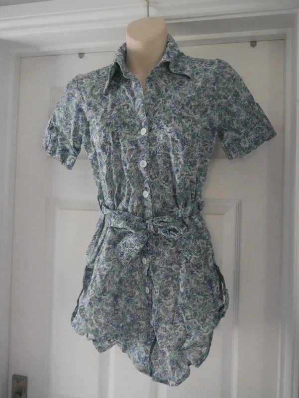 This Carbon Blue Floral Cotton Shirt Dress is perfect for warm summer days. Crafted from 100% cotton, it features a floral pattern and a matching belt. The lightweight fabric makes it ideal for wearing on its own or over swimwear. Ideal for casual outings, holidays, or pairing with leggings or jeans.