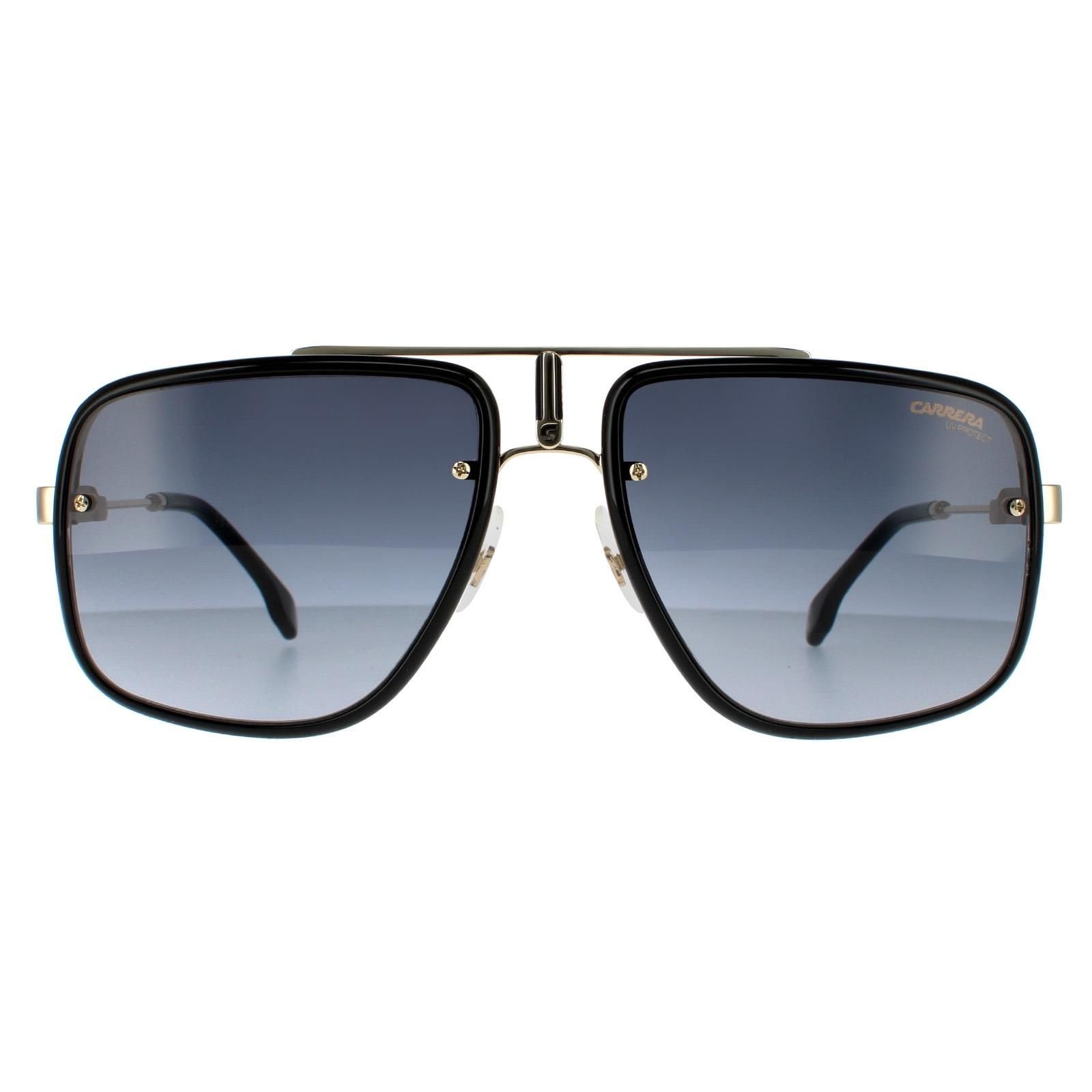 Sleek aviator sunglasses in gold black grey gradient with a lightweight metal frame. Features adjustable nose pads and plastic temple tips for a comfortable fit. The slender temples display the Carrera logo for brand authenticity.